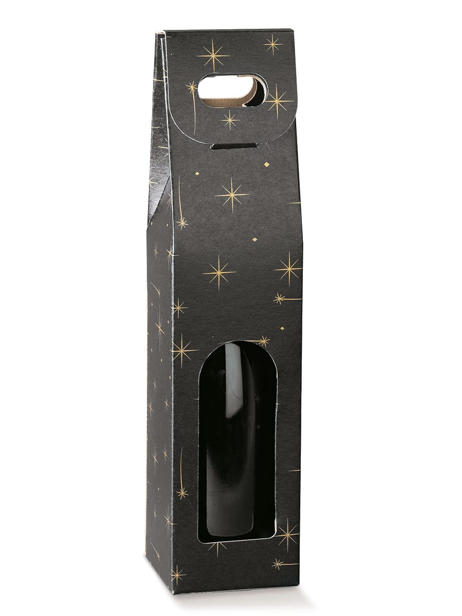 Τσάντα δώρου 1 φιάλης κρασιού από πολυτελές σκληρό χαρτόνι, με παράθυρο, ώστε να φαίνεται η ετικέτα του μπουκαλιού. Ταιριάζει σε όλους τους τύπους φιαλών.